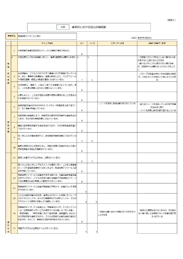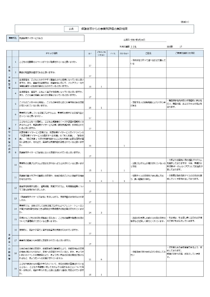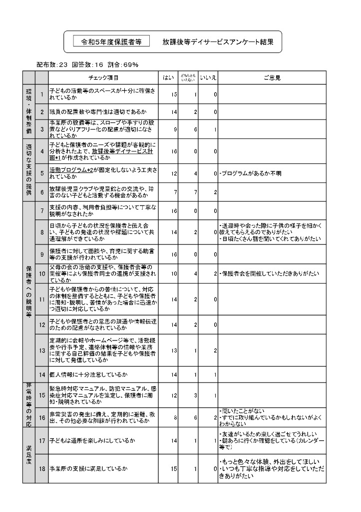 令和6年度放課後等デイサービス保護者アンケート結果表